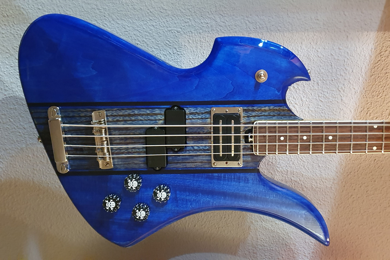 Bajo Mockingbird de Toni SBX Partiendo de un cuerpo de guitarra Mockingbird y un mástil de bajo antiguo, Toni ha