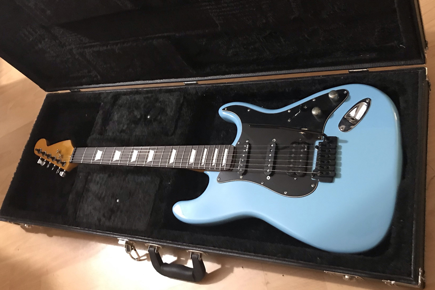 Stratocaster Daphne Blue de Miguel Miguel Angel montó esta fantástica Stratocaster con uno de nuestros cuerpos de caoba acabado Daphne