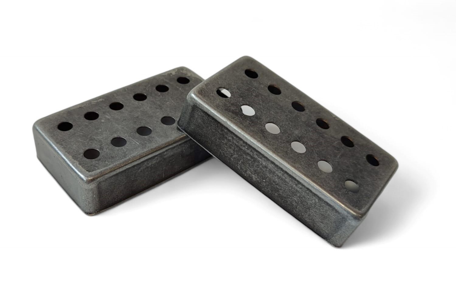 Aged dark chrome Artec covers for humbucker pickups with 12 adjustable poles