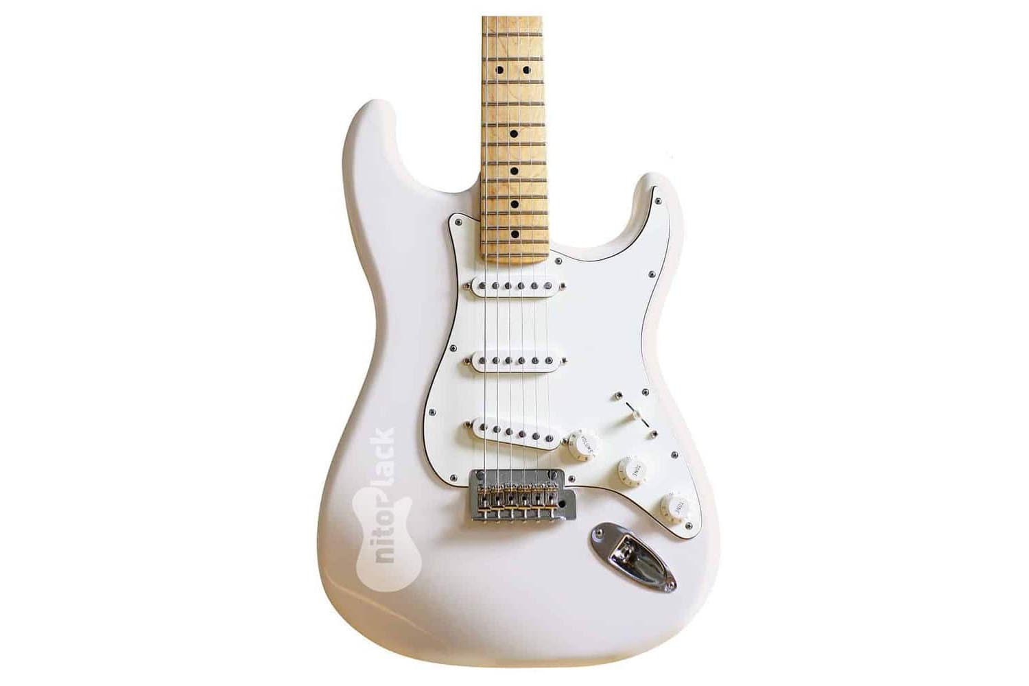 Fender classic Olympic White finish. White with a hint of grayish blue.
