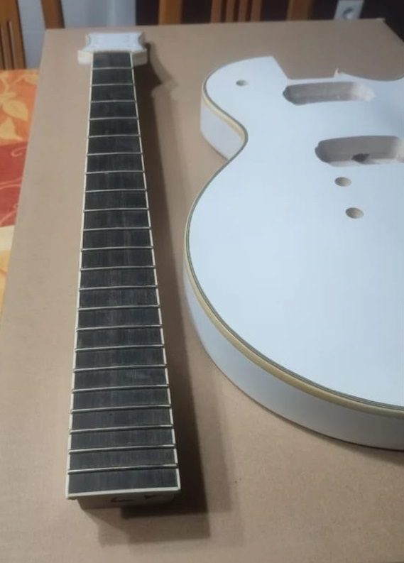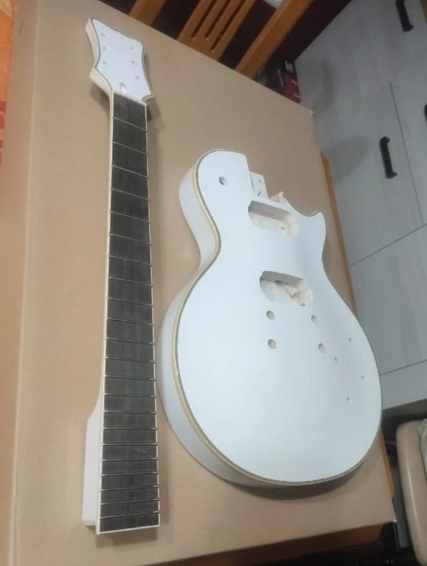 Les Paul style electric guitar Kit. White mahogany electric guitar body and maple with ebony fingerboard white neck