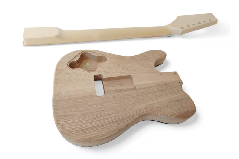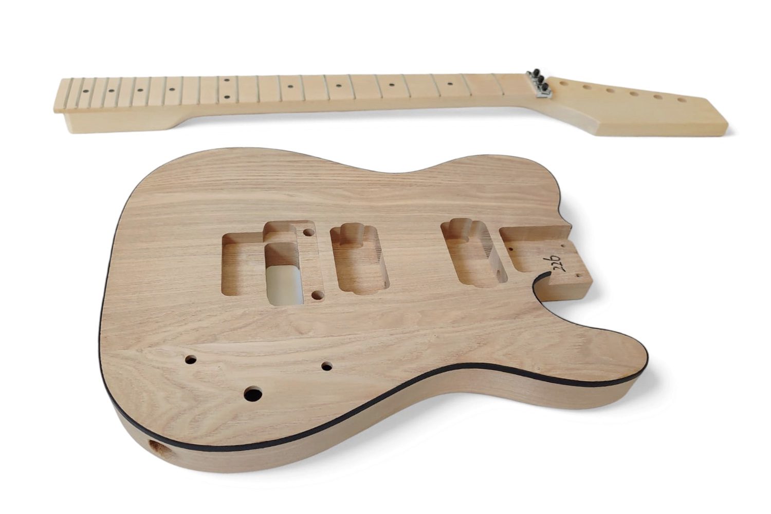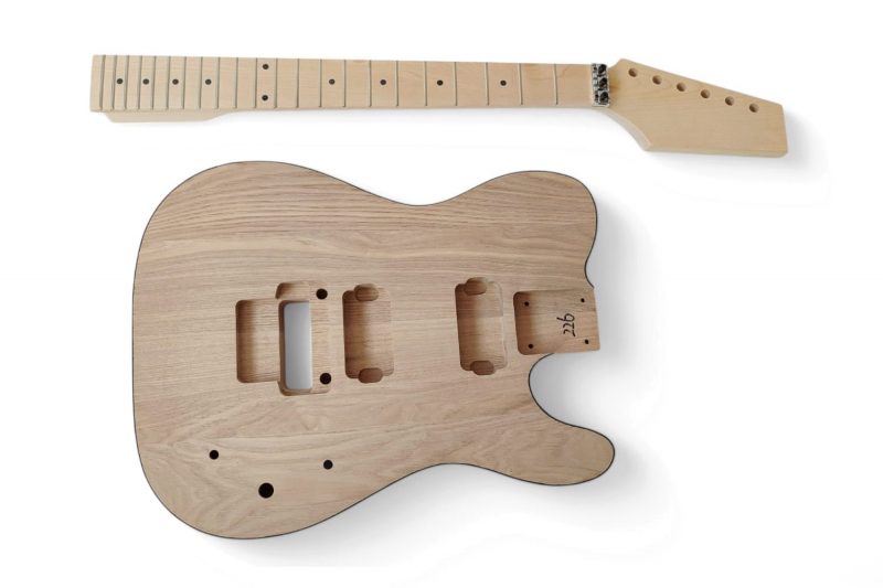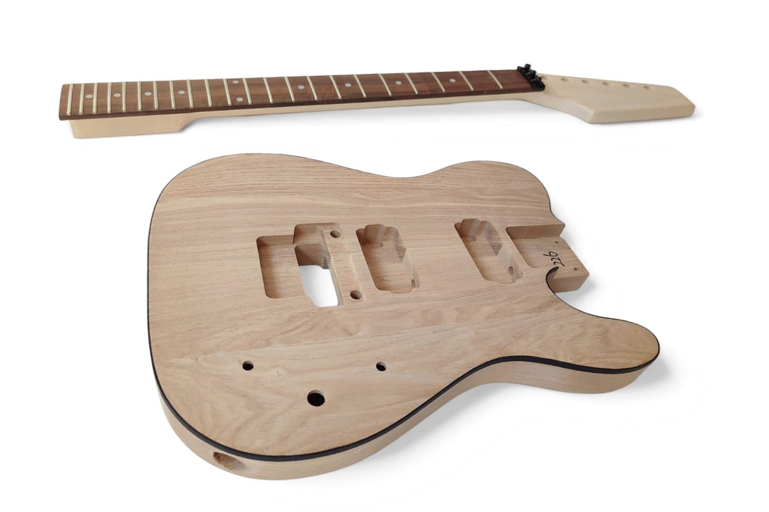 Kit de guitarra eléctrica estilo Telecaster de madera de fresno routeado para 2 pastillas humbucker y puente floyd rose