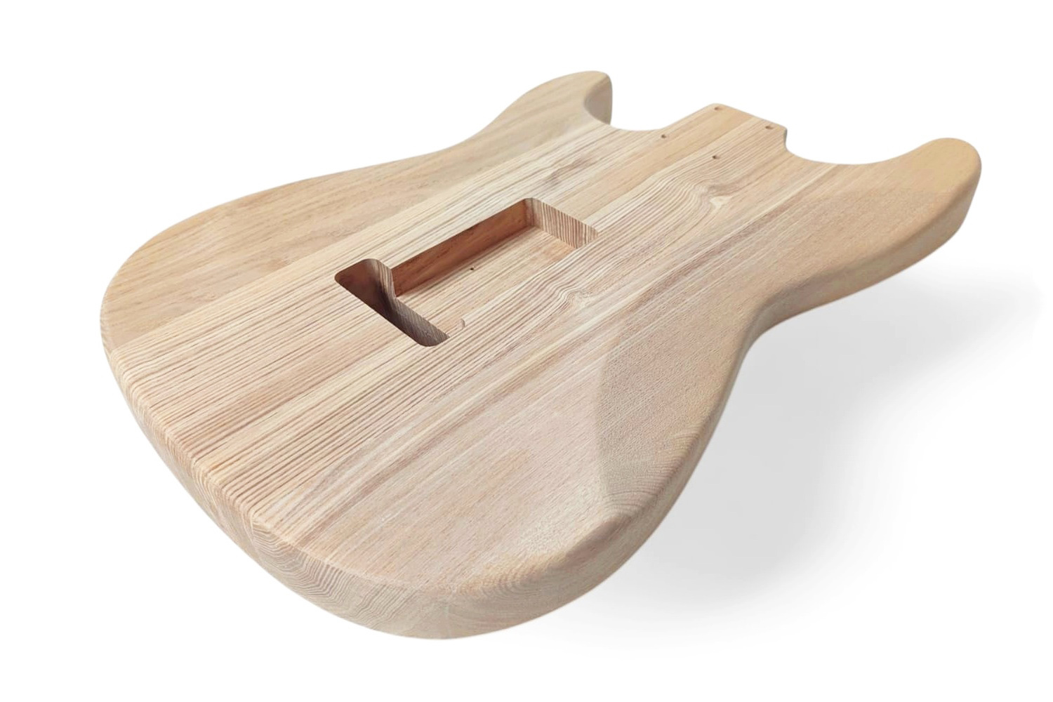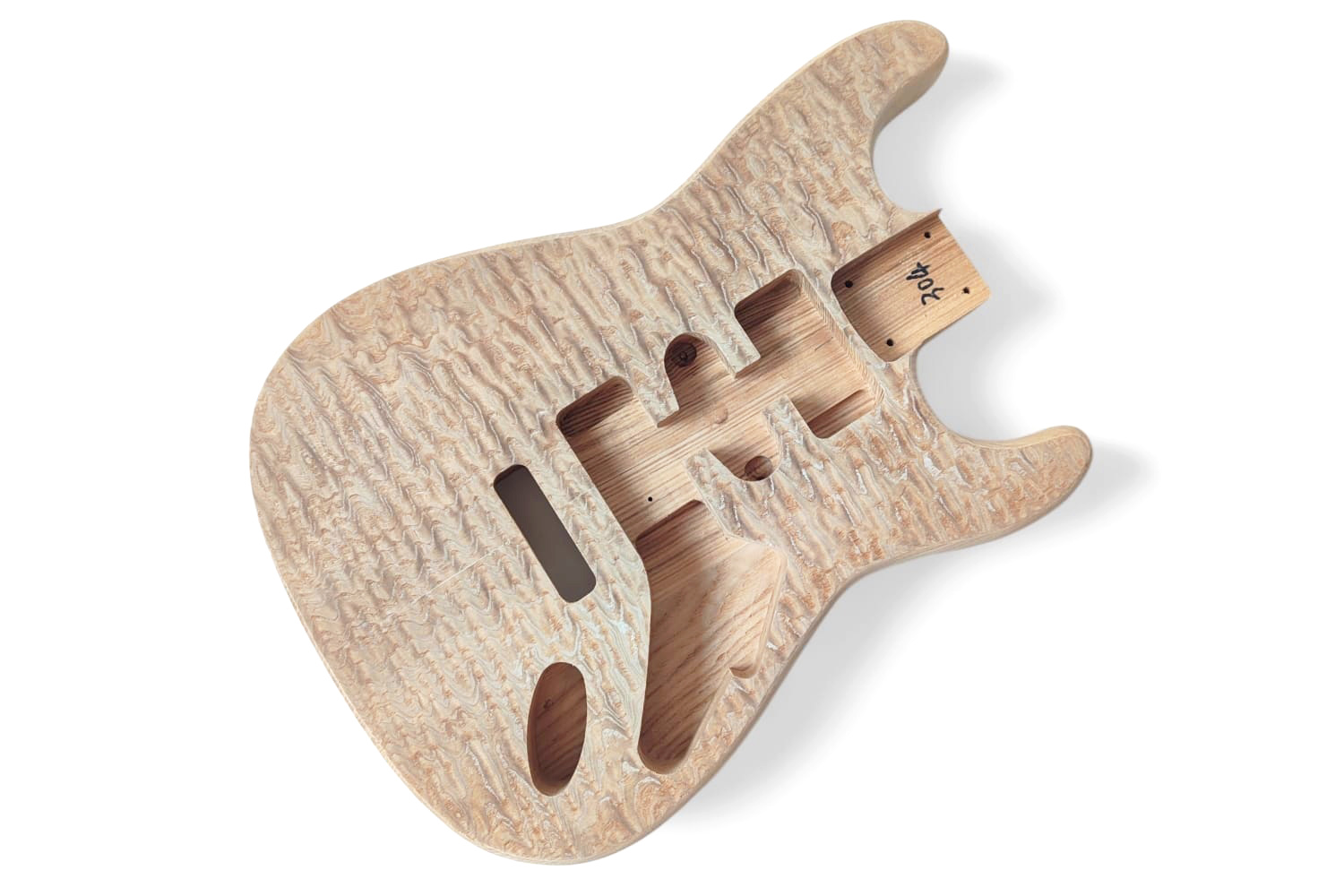 Cuerpo de guitarra eléctrica estilo Stratocaster de madera de fresno con tapa de fresno rizado sin acabado