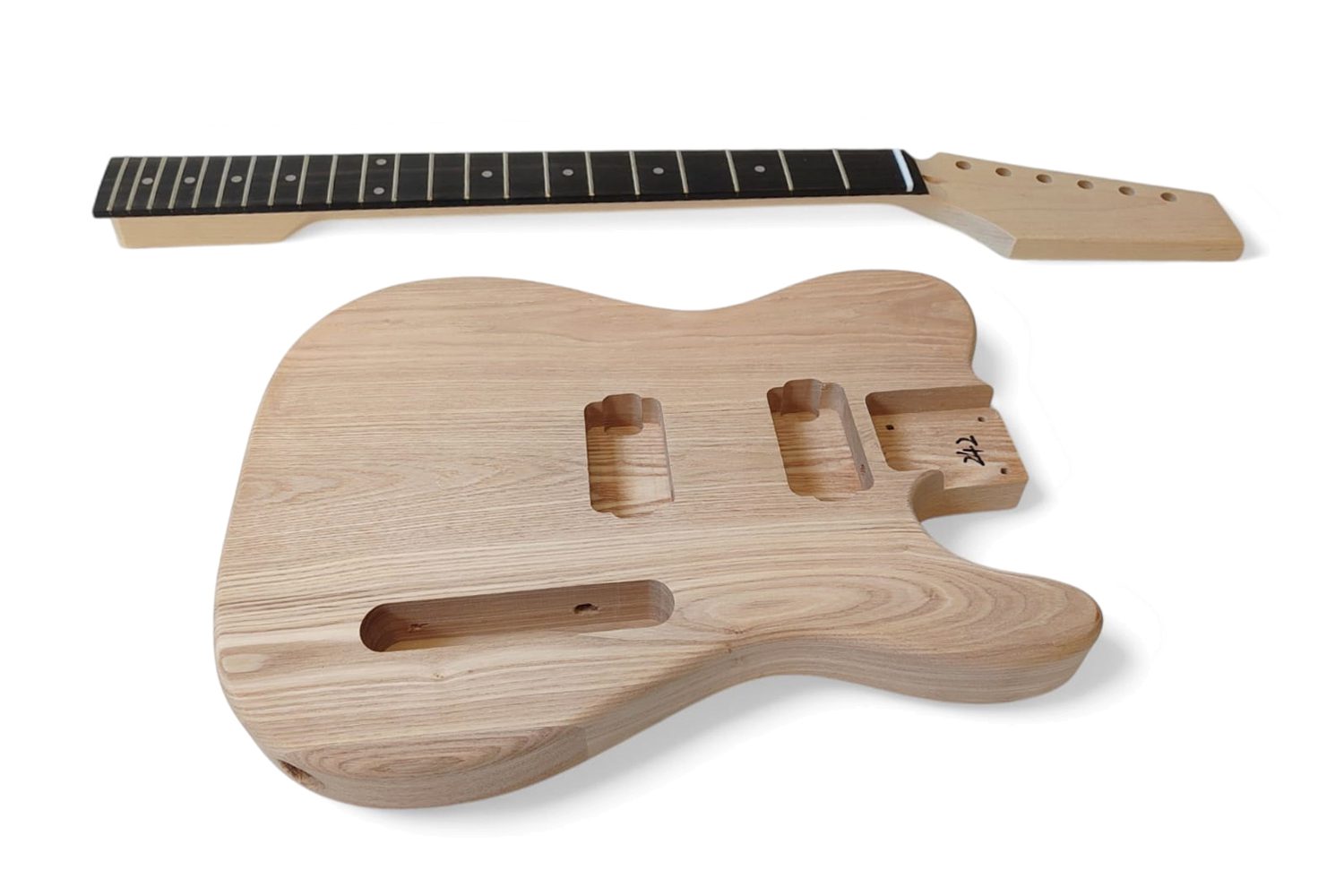 Kit de guitarra eléctrica estilo Telecaster de madera de fresno routeado para 2 pastillas humbucker y placa de control