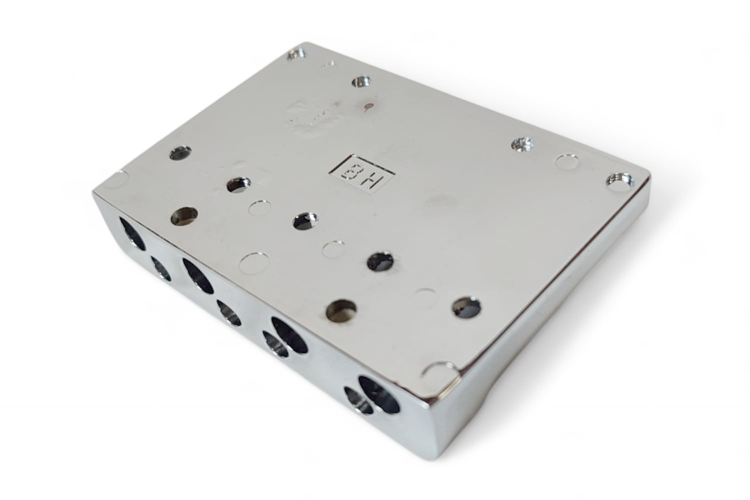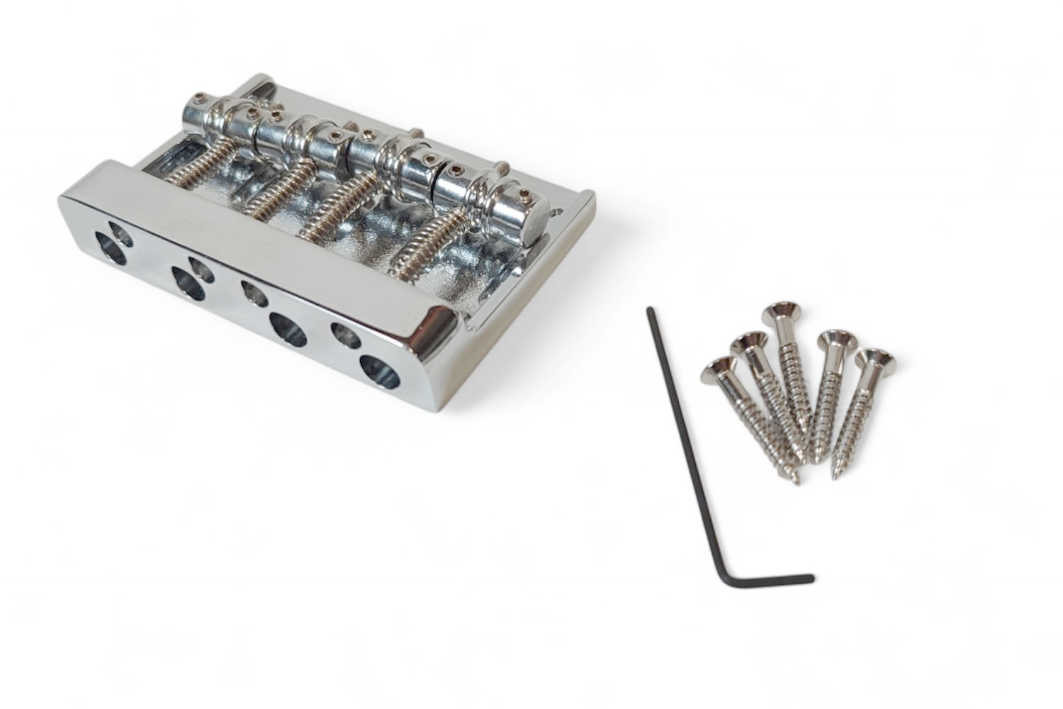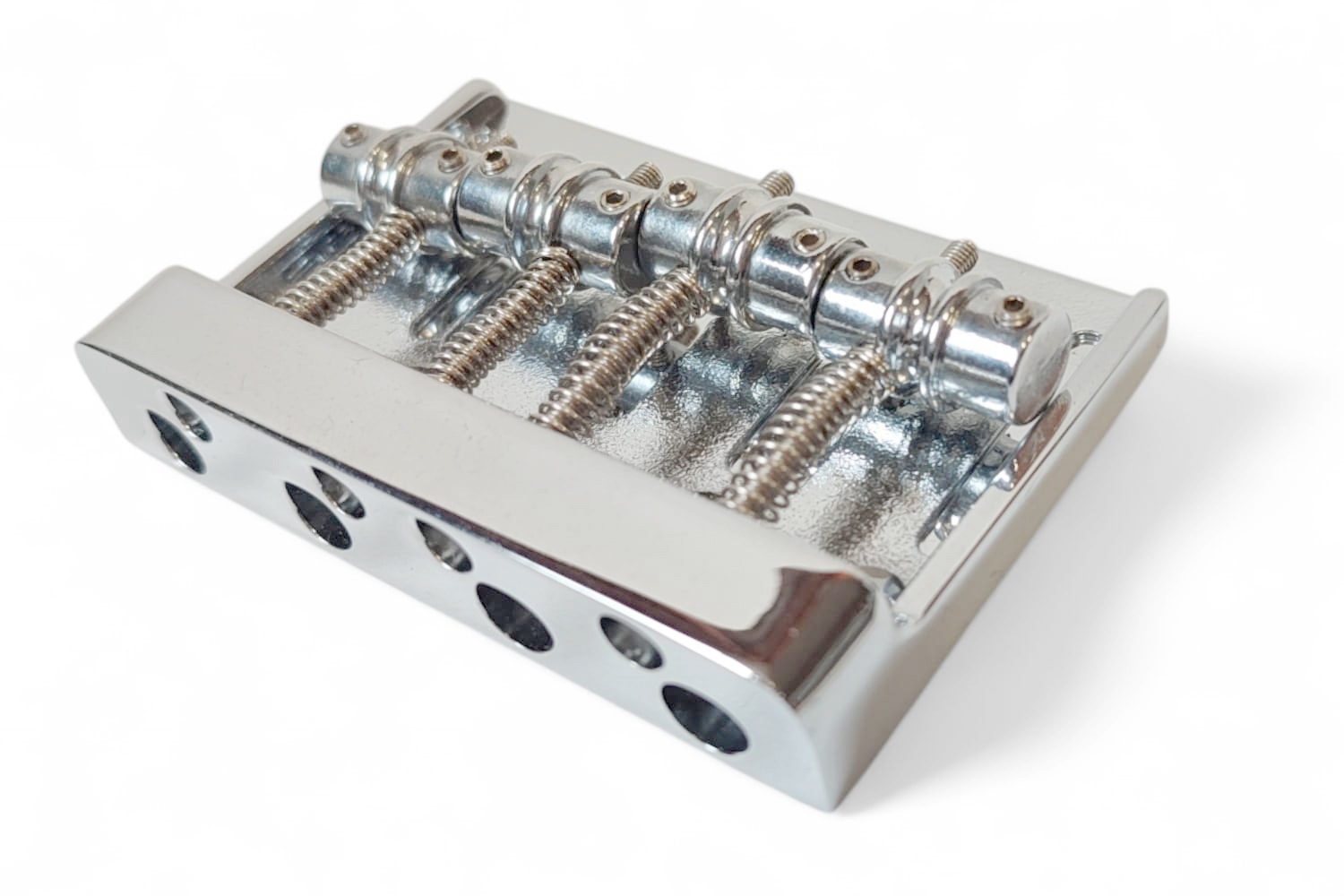 Puente fijo MB403 cromado para bajo de 4 cuerdas hecho en Corea. Estilo clásico pero con diseño moderno. Es un puente de alta calidad, fabricado por una de las fábricas de Corea que suministran directamente a Fender