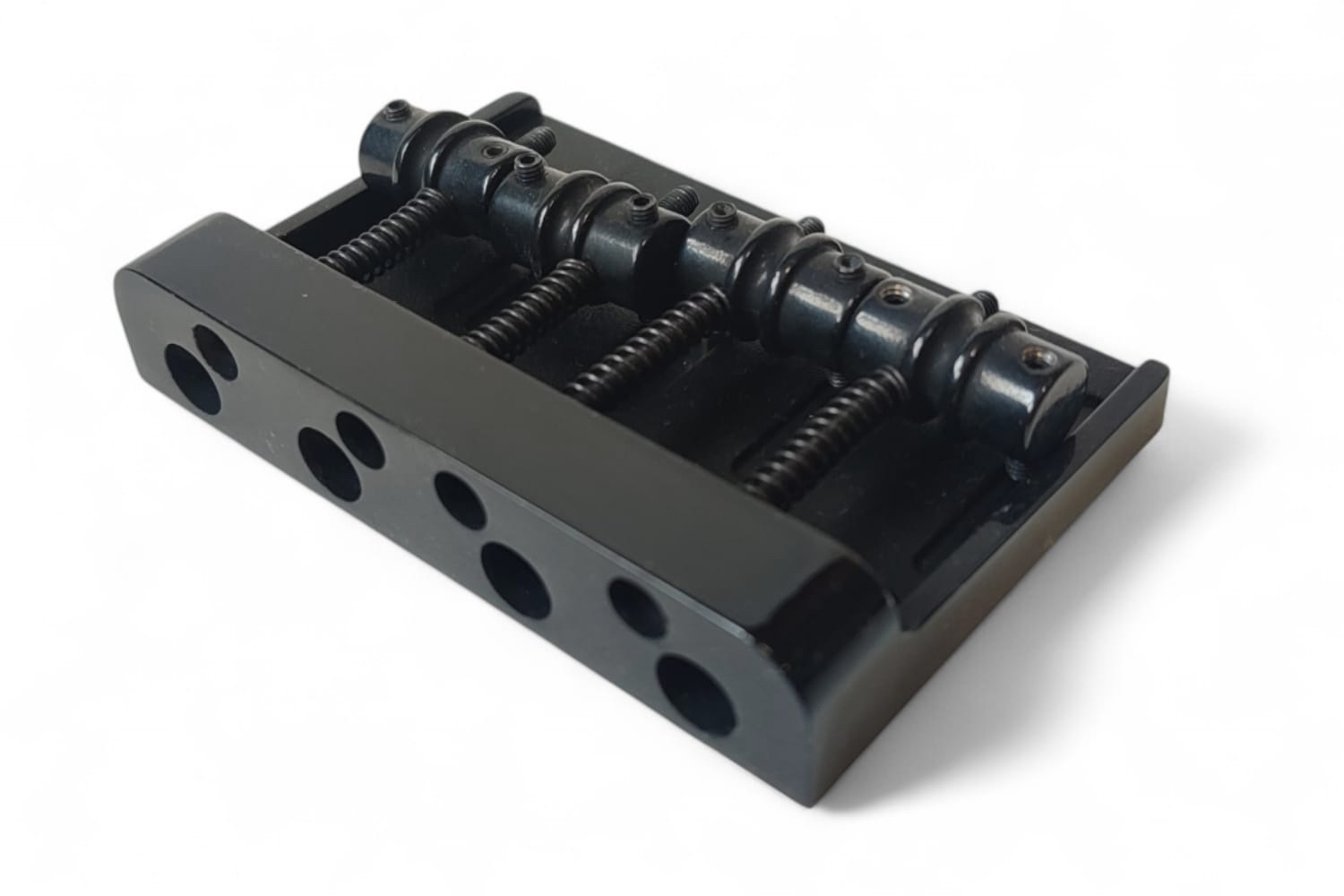 Puente fijo MB403 negro para bajo de 4 cuerdas  hecho en Corea. Estilo clásico pero con diseño moderno. Es un puente de alta calidad, fabricado por una de las fábricas de Corea que suministran directamente a Fender