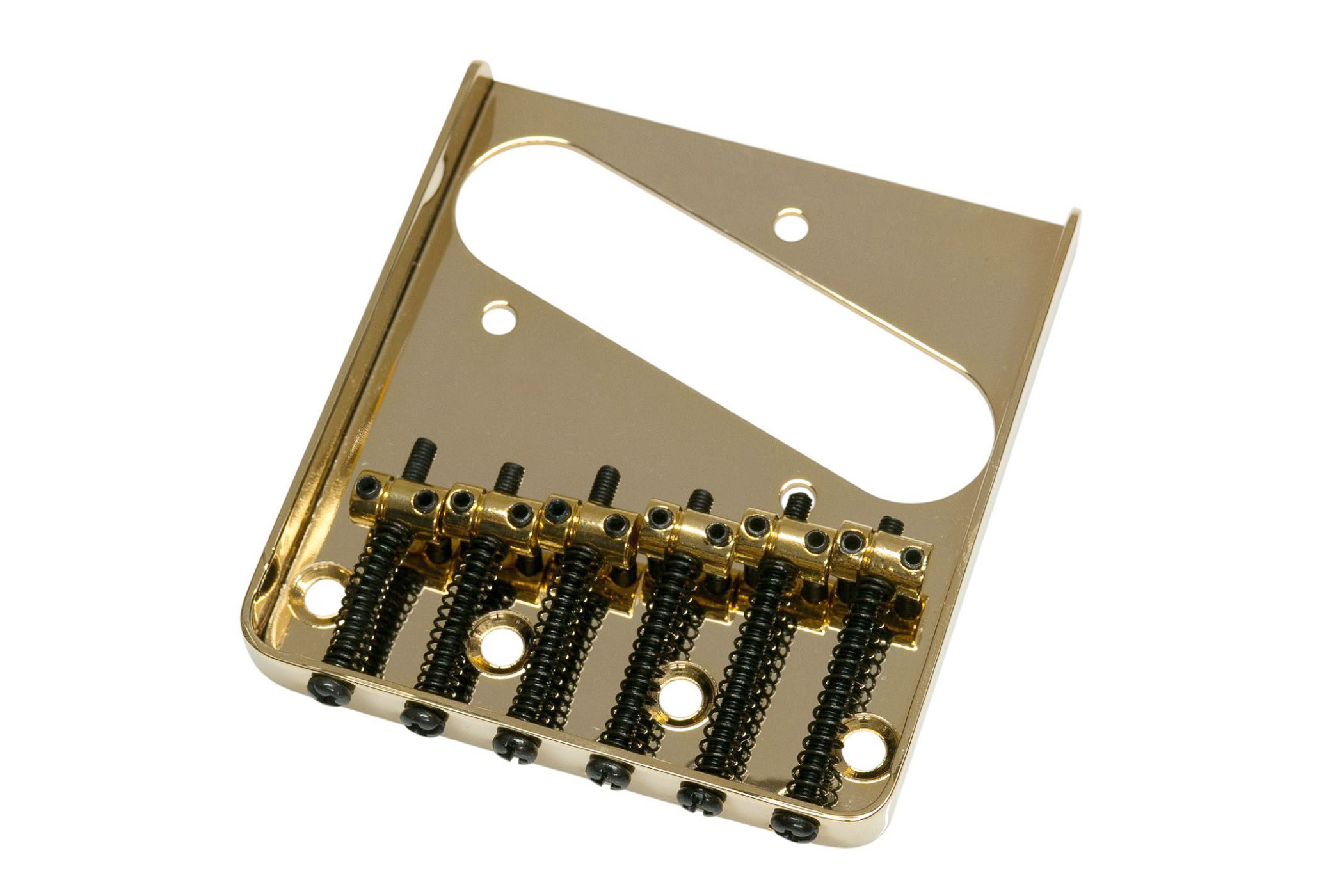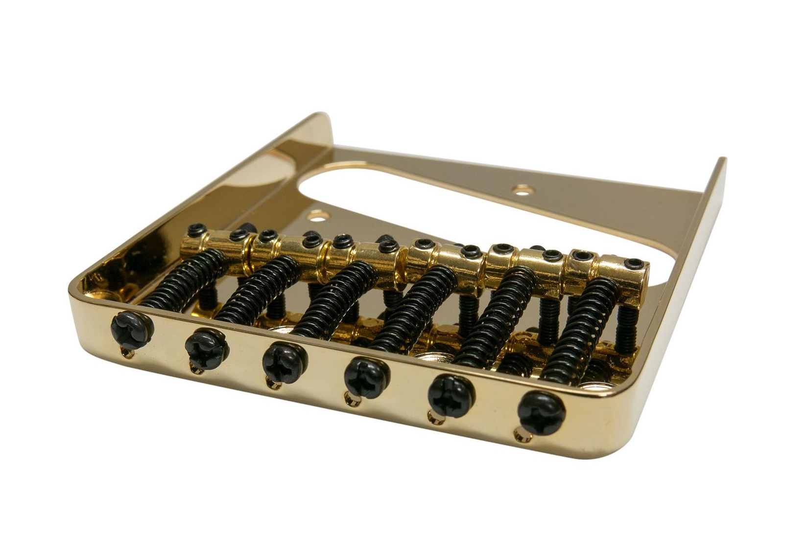 Puente Telecaster BT 006 en color dorado de 6 silletas Telecaster individuales y diseño clásico de alta calidad hecho por Sung-il en Korea. Esta fábrica es la misma que realiza los puentes Wilkinson